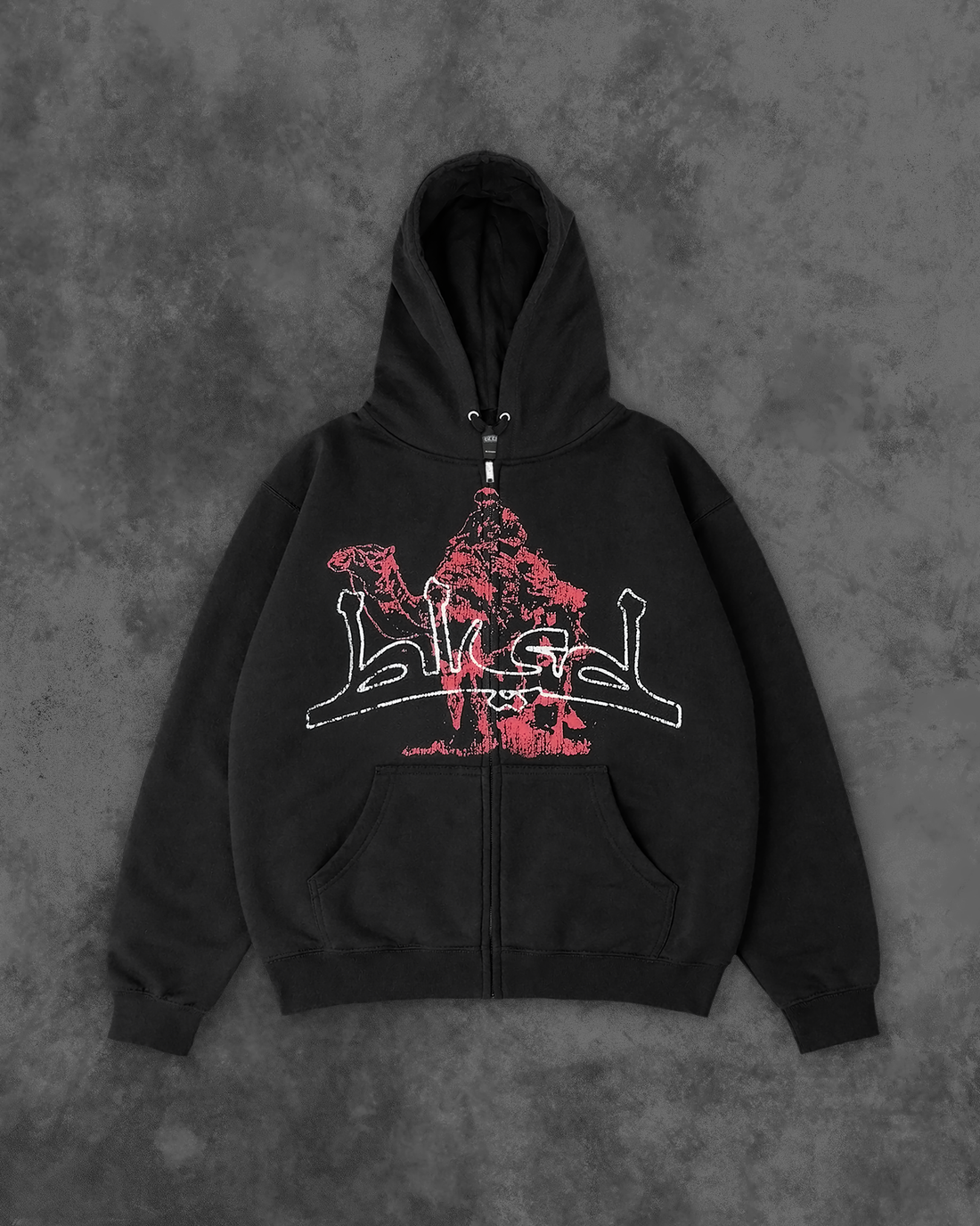 DETAILS • 8OZ 80/20 COTTON FLEECE HOODIE (300GSM) • 2-COLOR HAND-PULLED SCREEN PRINT • HAND SEWN SATIN...